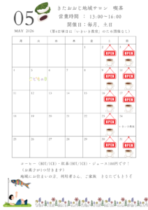 地域交流サロンで喫茶を開催いたします♪5月予定@地域密着型総合ケアセンターきたおおじ